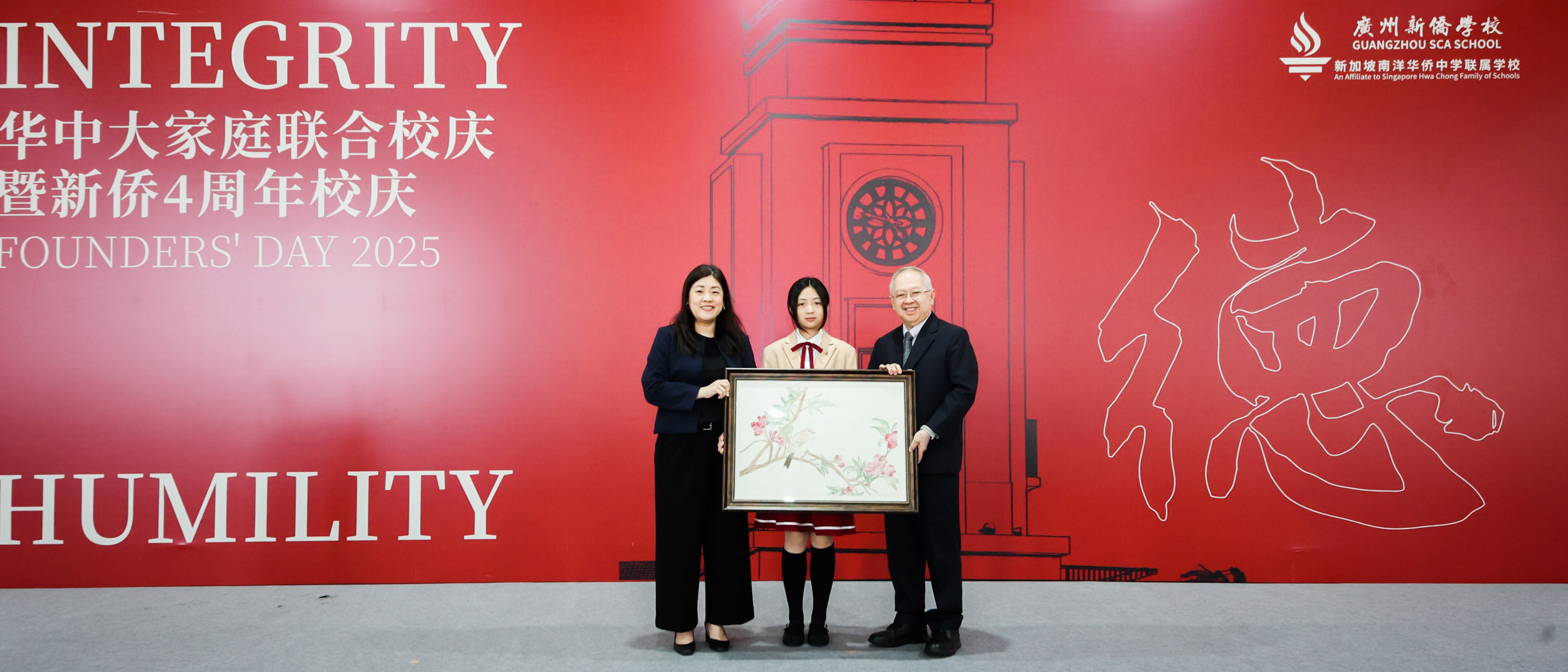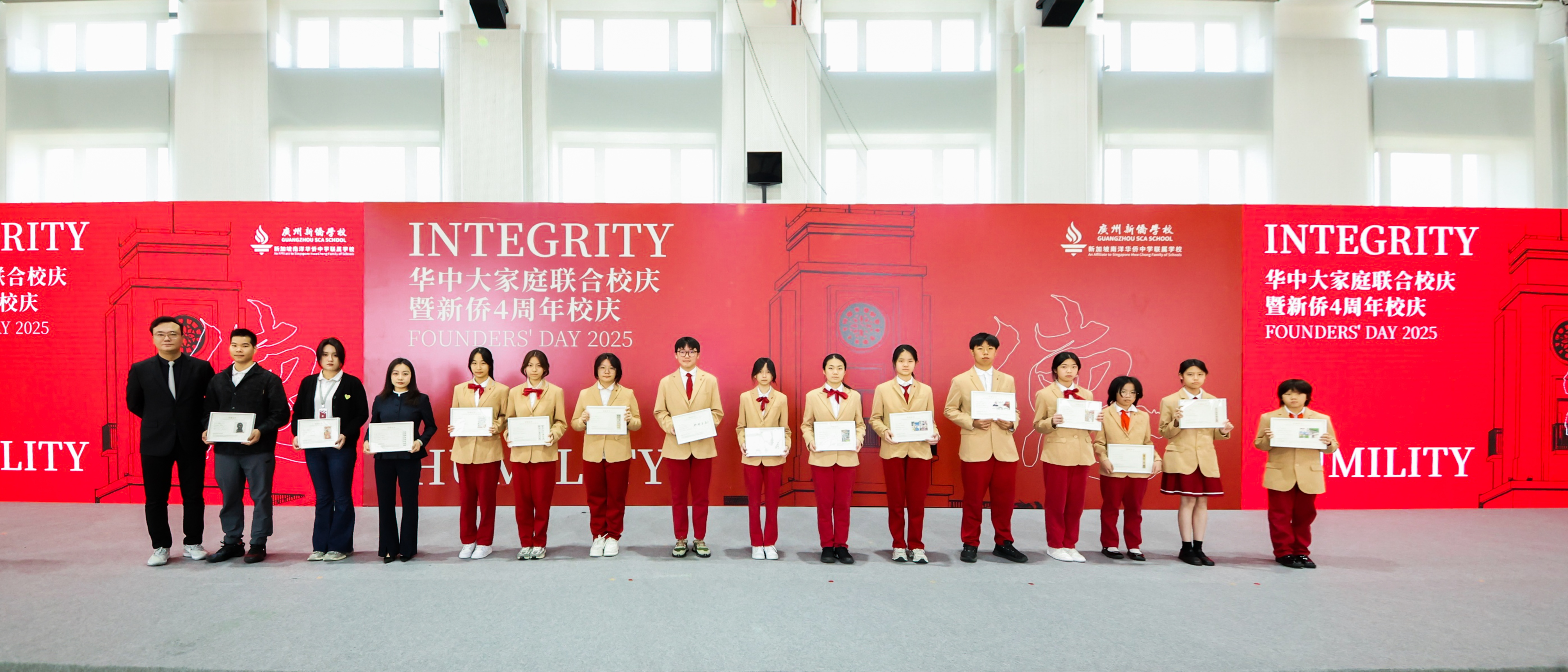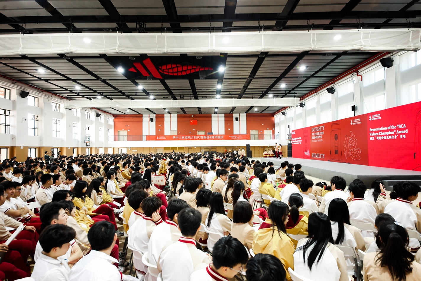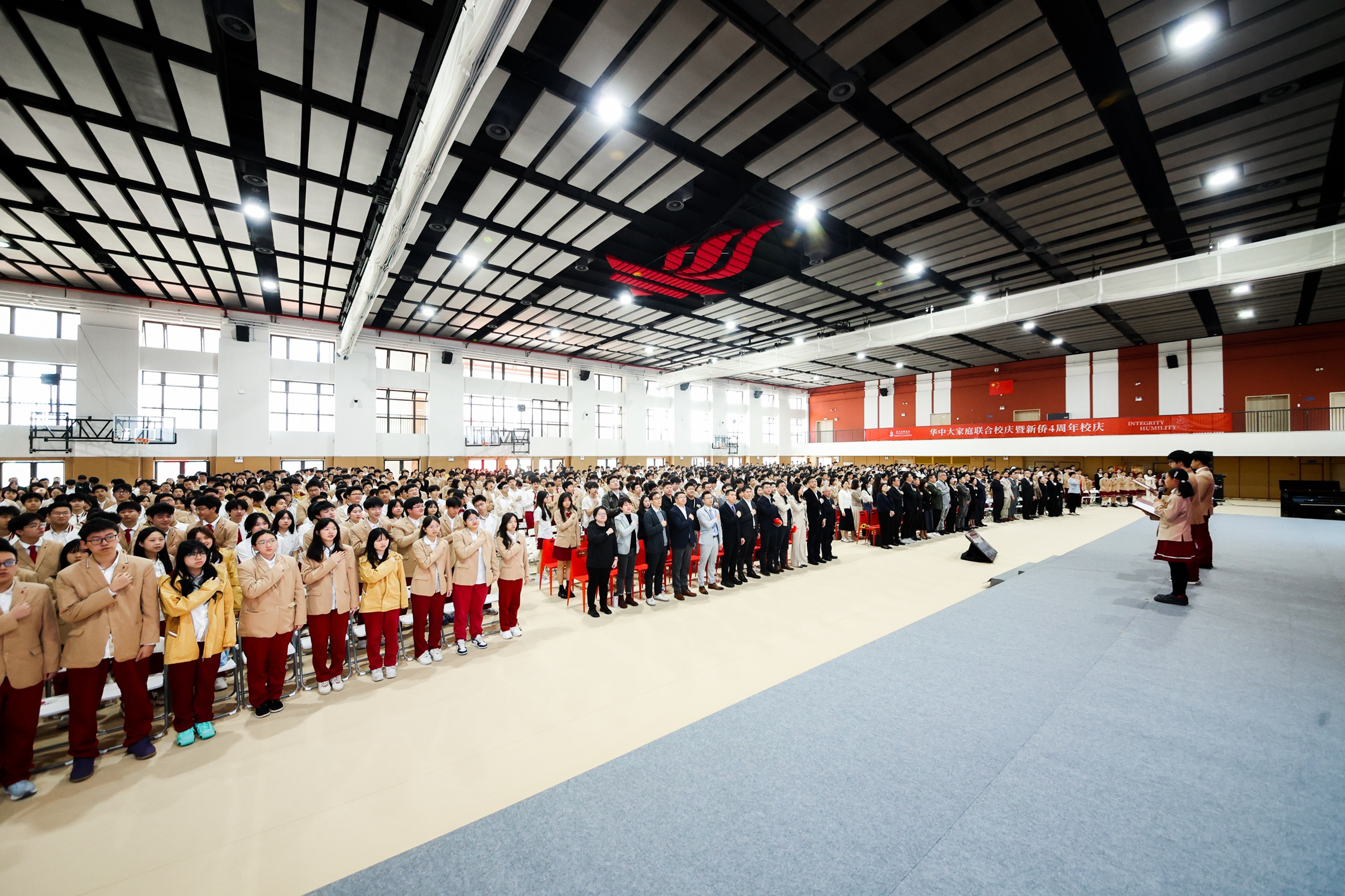 四载以德 | 广州新侨学校四周年生日快乐 !2025年3月21日,广州新侨学校迎来华中大家庭联合校庆暨新侨四周年校庆。在学校体育馆,全校师生、校外嘉宾及家委会代表,约1500人共庆这一特殊时刻。 本次校庆典礼以“德”为主题,“德”之一字,正是取自于学校核心价值观之一的“厚德载物”。