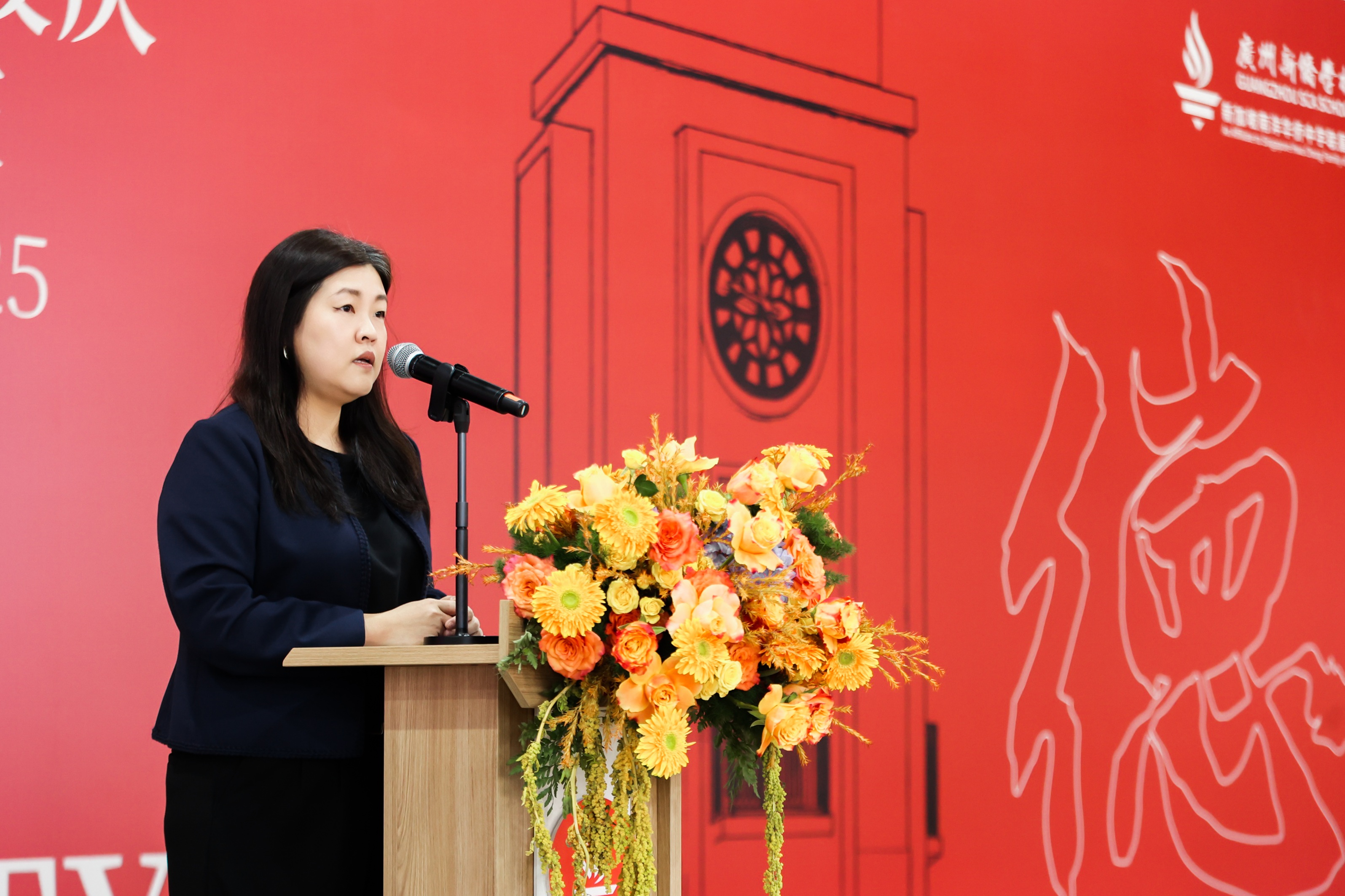 上午九点,典礼正式拉开帷幕。华中校友、新加坡驻广州总领事黄美美女士作为特邀嘉宾发表演讲,这是黄美美总领事第二次到访新侨学校。她高度评价了学校作为中新教育合作典范的成果,肯定了学校在促进中新教育交流中的桥梁作用。面对人工智能重塑社会的时代浪潮,她还特别强调:技术能颠覆行业,甚至重塑经济格局,却无法复制‘诚信’与‘谦逊’这样的宝贵品质。她鼓励新侨学子持续追求这些优秀品质,并表示,“这些价值观让我们成为真正意义上的人,也将使你们成为未来的杰出领导者。”